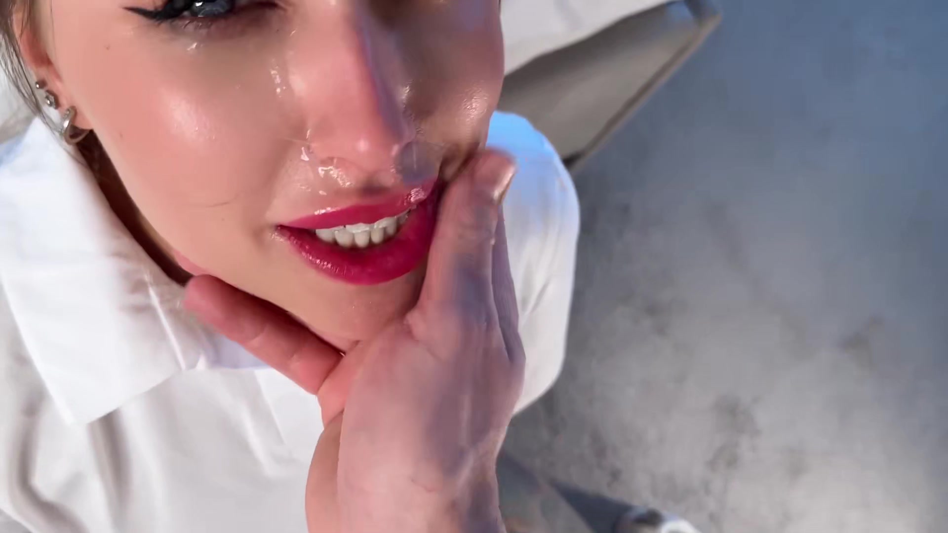 粉嫩的骚逼黑发美女的面部精液面膜让大鸡巴一滴不剩