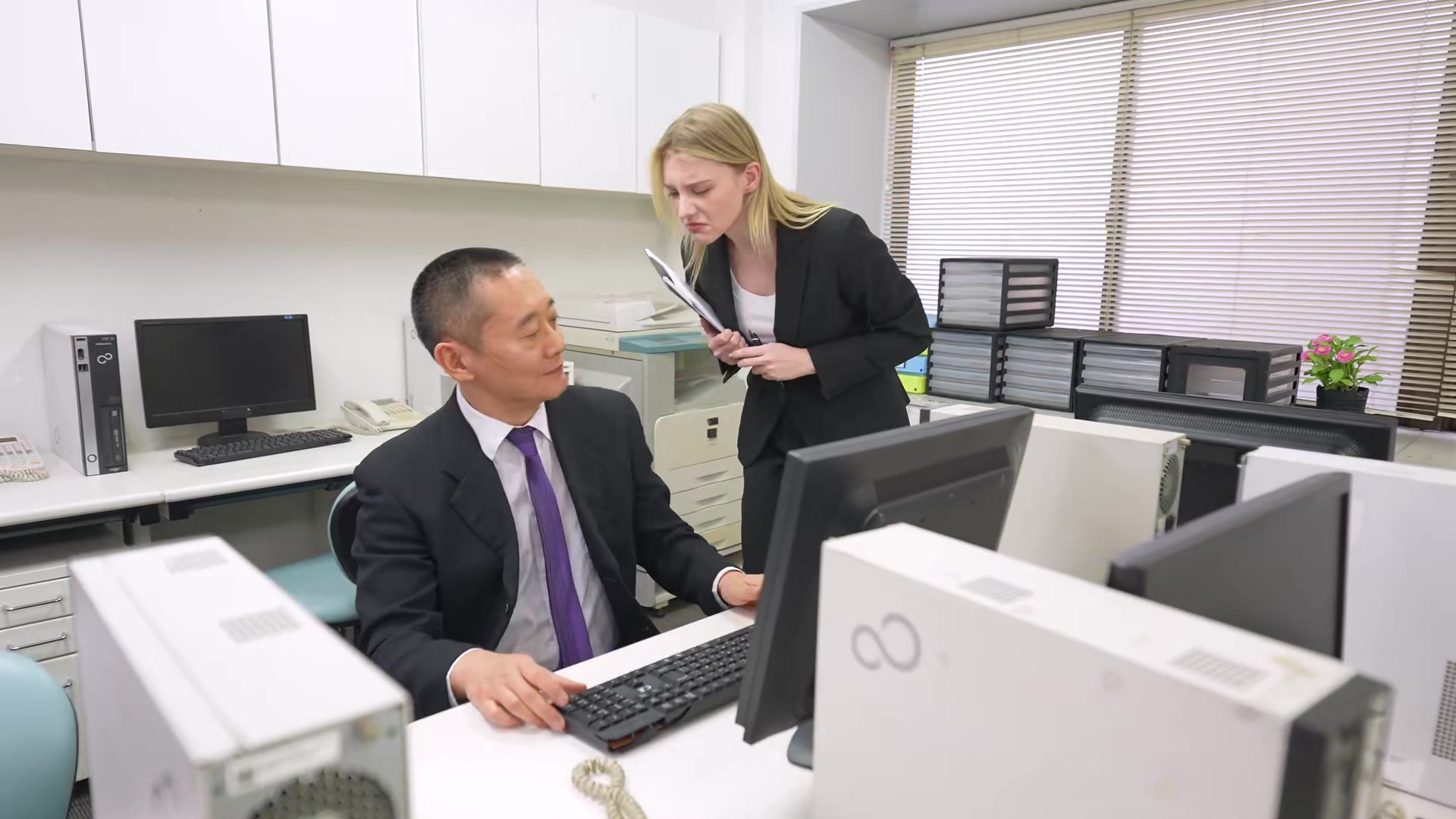颜射性感大屁股秘书是一个淫荡荡妇 通过让乳头凸出来引诱员工 堀北美纪
