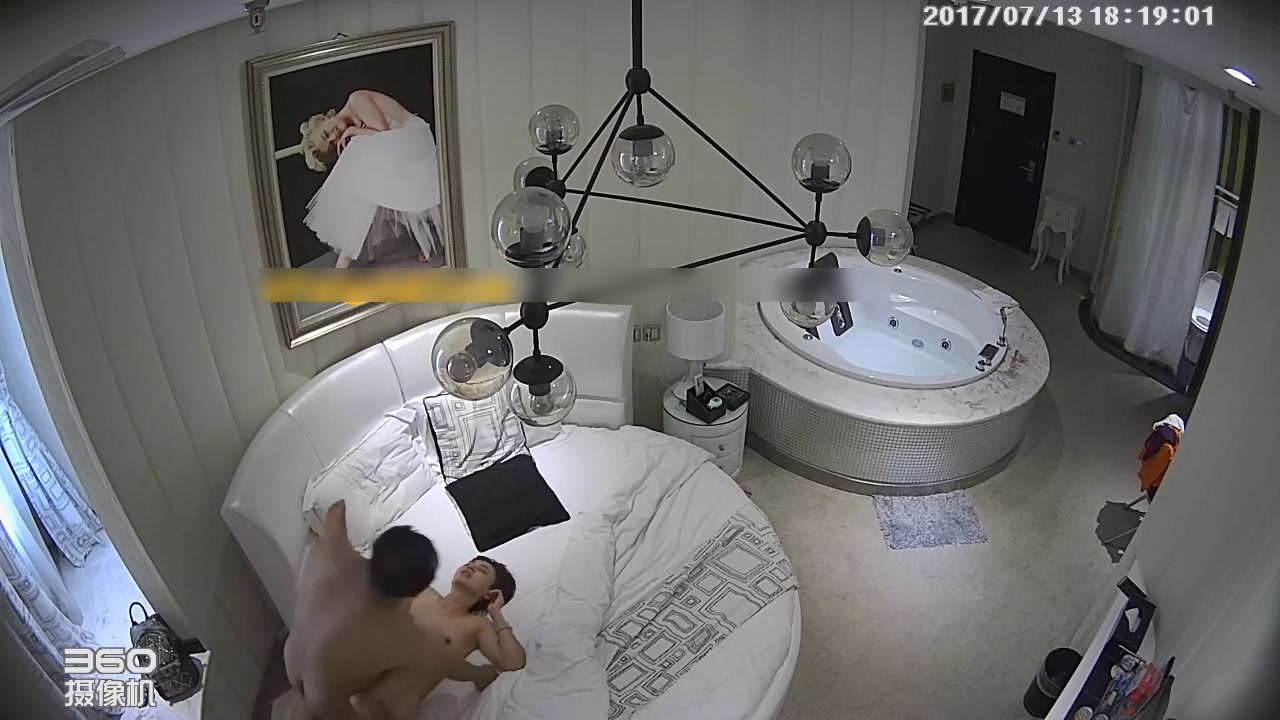 高档主题宾馆拍秃顶小领导干情人圆床上扛起腿猛插还挺猛的