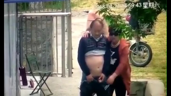 保安翻看监控农家小院大爷和姘头大白天在门前老汉推车一边看一边调侃