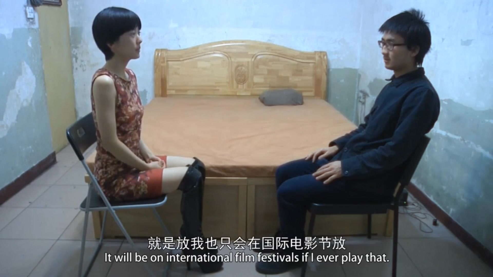 对白搞笑淫荡剧情演绎邋遢眼镜导演采访想当演员外表清纯短发美女小姐