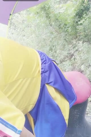女主播穿足球服電瓶車上野戰還能爬樹上尿尿2
