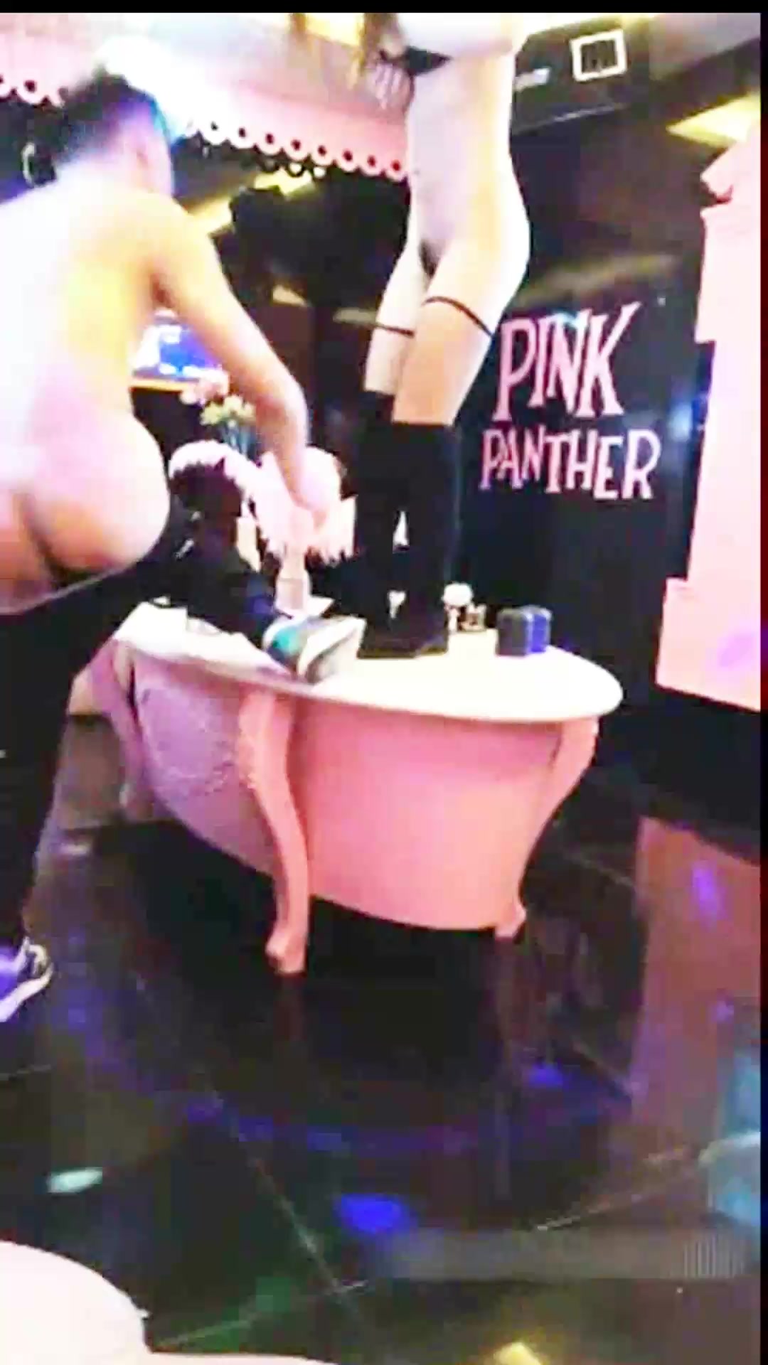 2人站在茶几上边操边唱歌