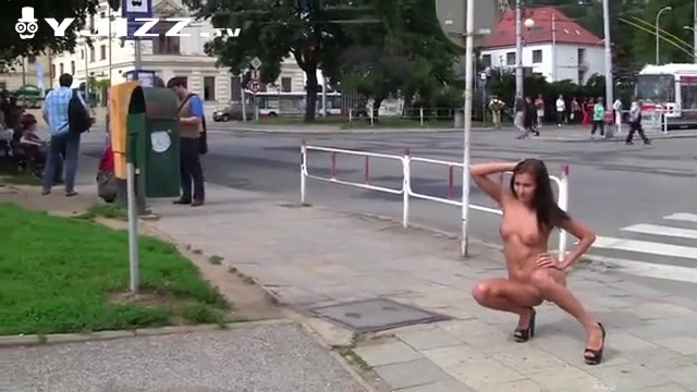 布拉格街道身材完美的高颜值模特在大庭广众之下宽衣解带进行拍摄 路人经过无所畏惧